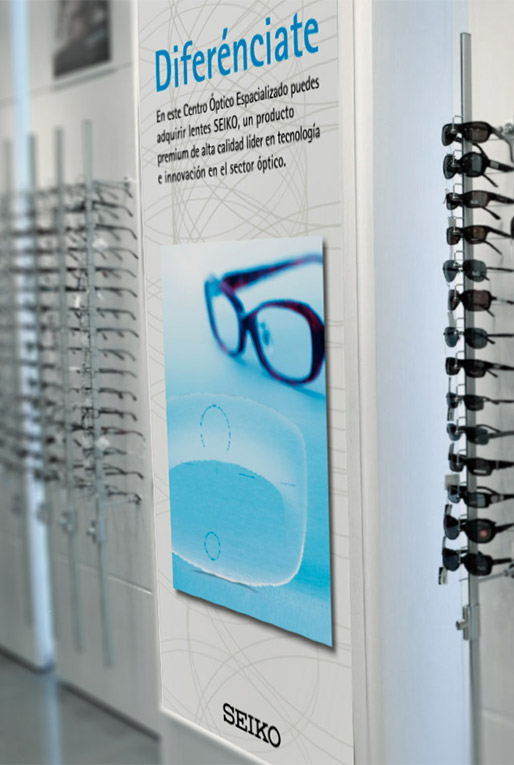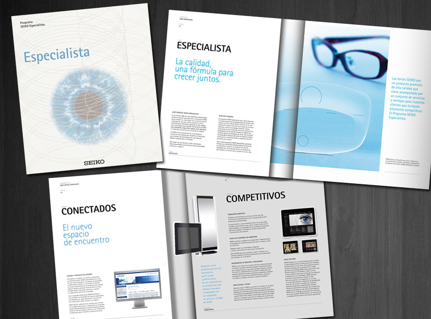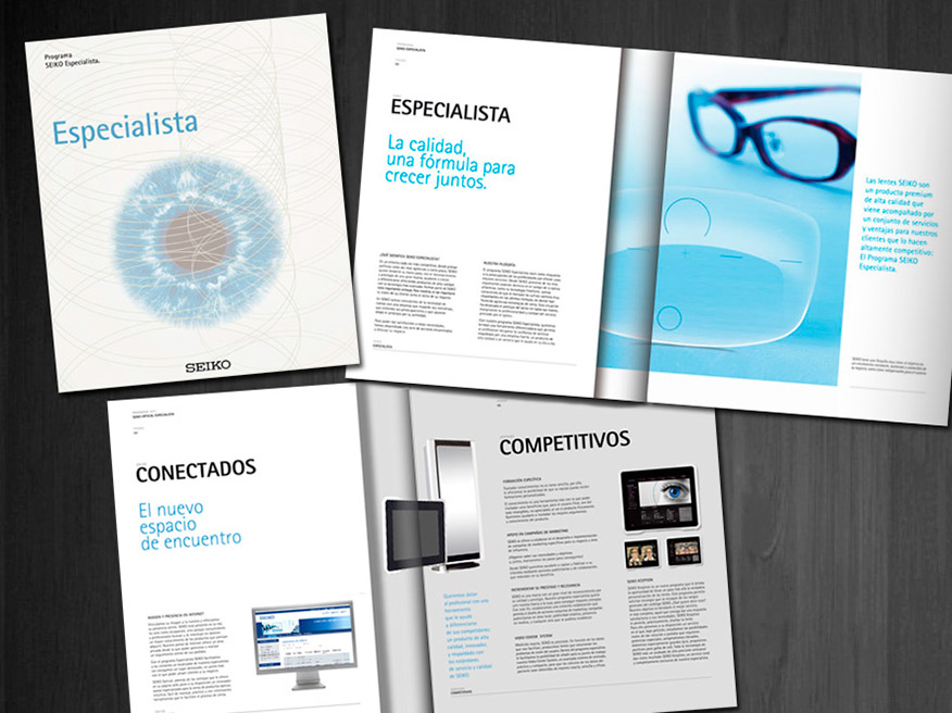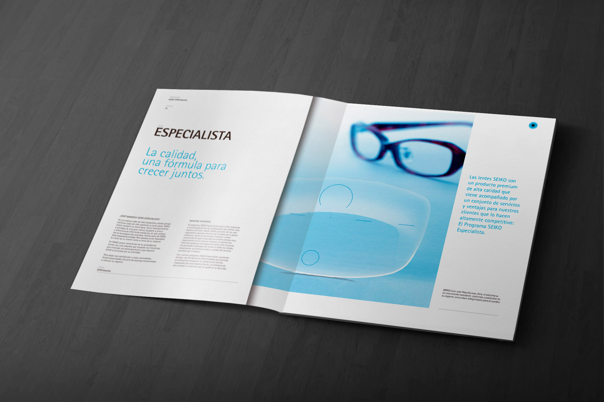 EL GRUPO INTERNACIONACIONAL tiene que presentar sus productos a las mejores ópticas españolas y para ello creamos una colección de piezas que destaquen tanto en formato como en materiales, utilizando un diseño límpio y minimalista: rollups en diferentes formatos para combinar en las presentaciones en tienda, display de mesa y vinilos de escaparate para los asociados, y un dossier que recoge los valores de SEIKO Optical y los transforma en ventajas para los profesionales "Especialistas".
